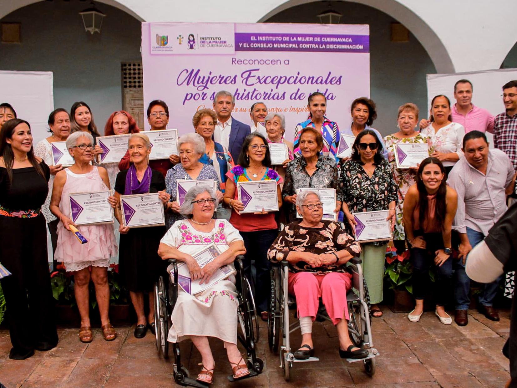 El Ayuntamiento de Cuernavaca, a través del Instituto de la Mujer de Cuernavaca (IMC), y el Consejo Municipal contra la Discriminación, entregó este viernes el reconocimiento “Mujeres Excepcionales por su Historia de Vida” a 20 mujeres adultas mayores que, con su ejemplo y compromiso, han dejado una huella profunda en sus familias y comunidades.