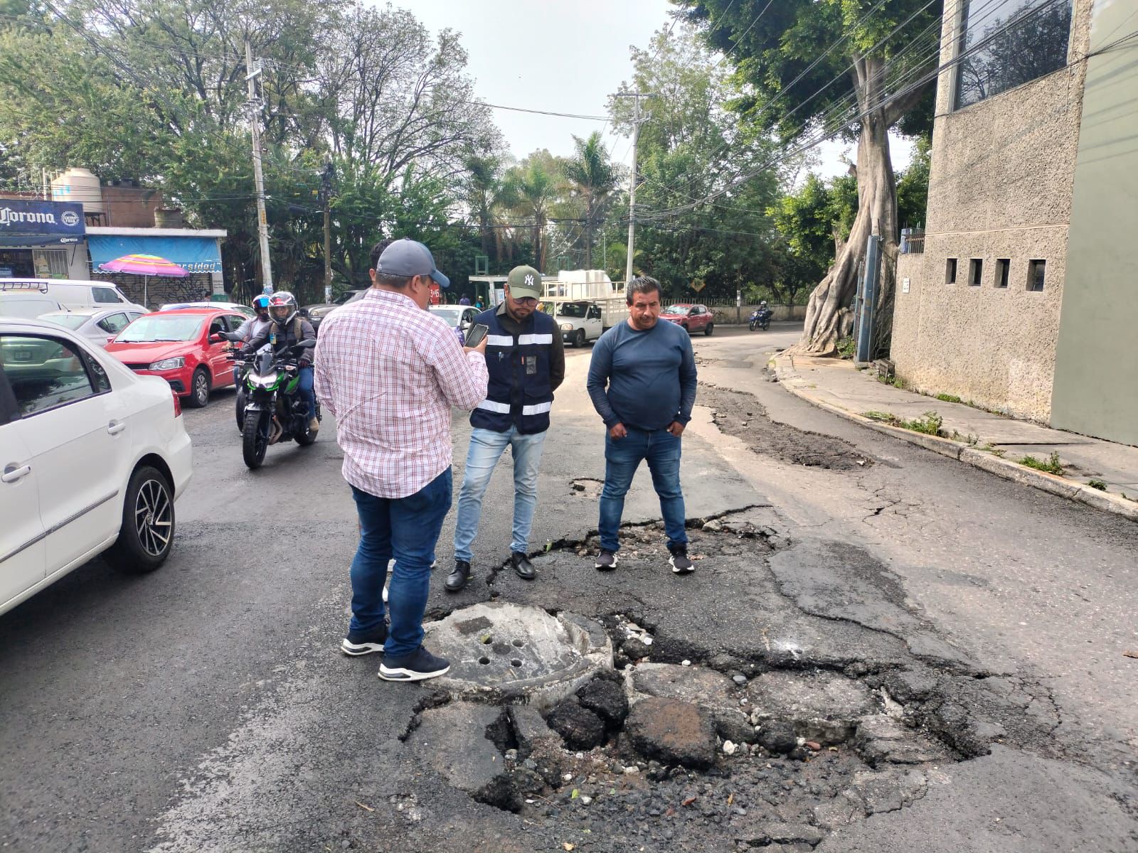Ante esta situación, se llevó a cabo una supervisión conjunta con el Sistema de Agua Potable y Alcantarillado de Cuernavaca (SAPAC) para coordinar las acciones necesarias, acordando que el SAPAC procederá con la sustitución de brocales en puntos críticos, mientras que la SDSySP realizará labores de bacheo, retiro de escombro y arrastre de finos en ambas avenidas.