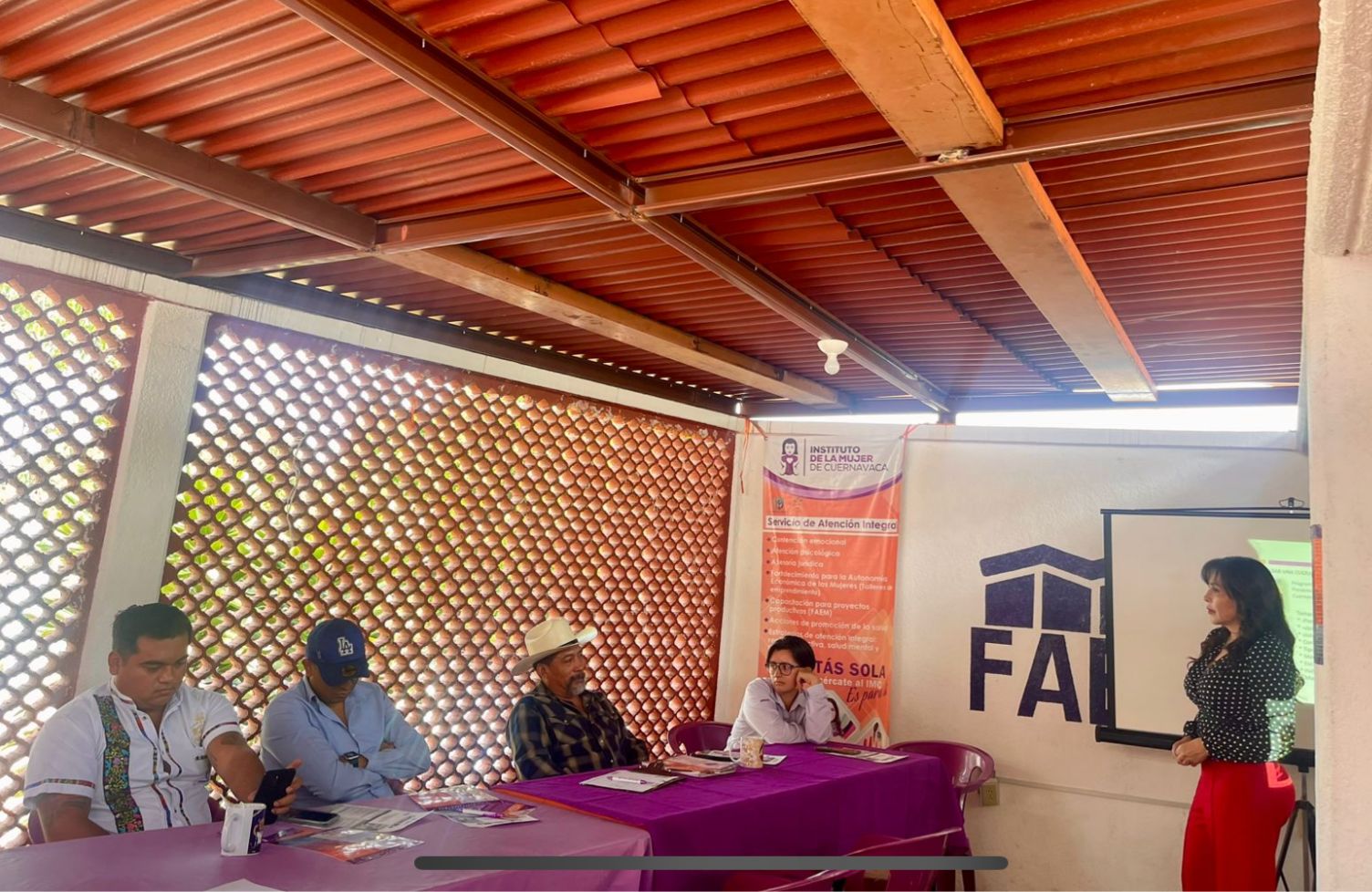 En una reunión de trabajo con ayudantes municipales, la directora del Instituto de la Mujer de Cuernavaca (IMC), Lorena Elizabeth Castillo, presentó los programas y actividades del organismo, mismos que puso a disposición de las mujeres de sus respectivas colonias y comunidades.