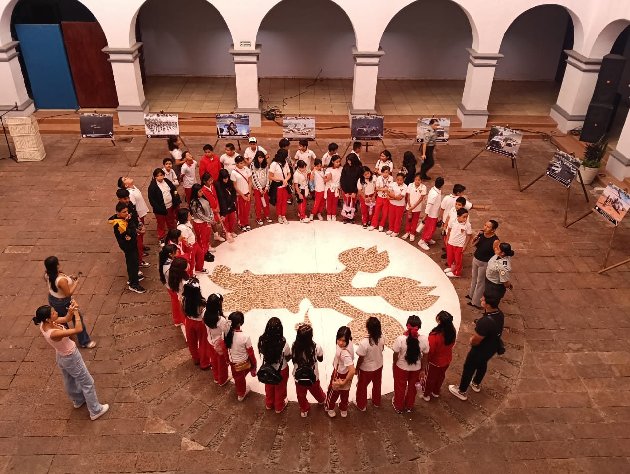 Hasta la explanada del Museo de la Ciudad de Cuernavaca llegaron decenas de alumnas y alumnos de 5° y 6° grado de la Escuela Primaria “Enrique Pestalozzi” para apreciar las fotografías que conforman dicha muestra. Durante el recorrido, personal de la Guardia Nacional explicó el contexto de cada imagen, las cuales muestran acciones como el combate a incendios forestales, participación en actos cívicos escolares, rescates durante inundaciones y la promoción de la equidad de género con mujeres policías, entre otras.