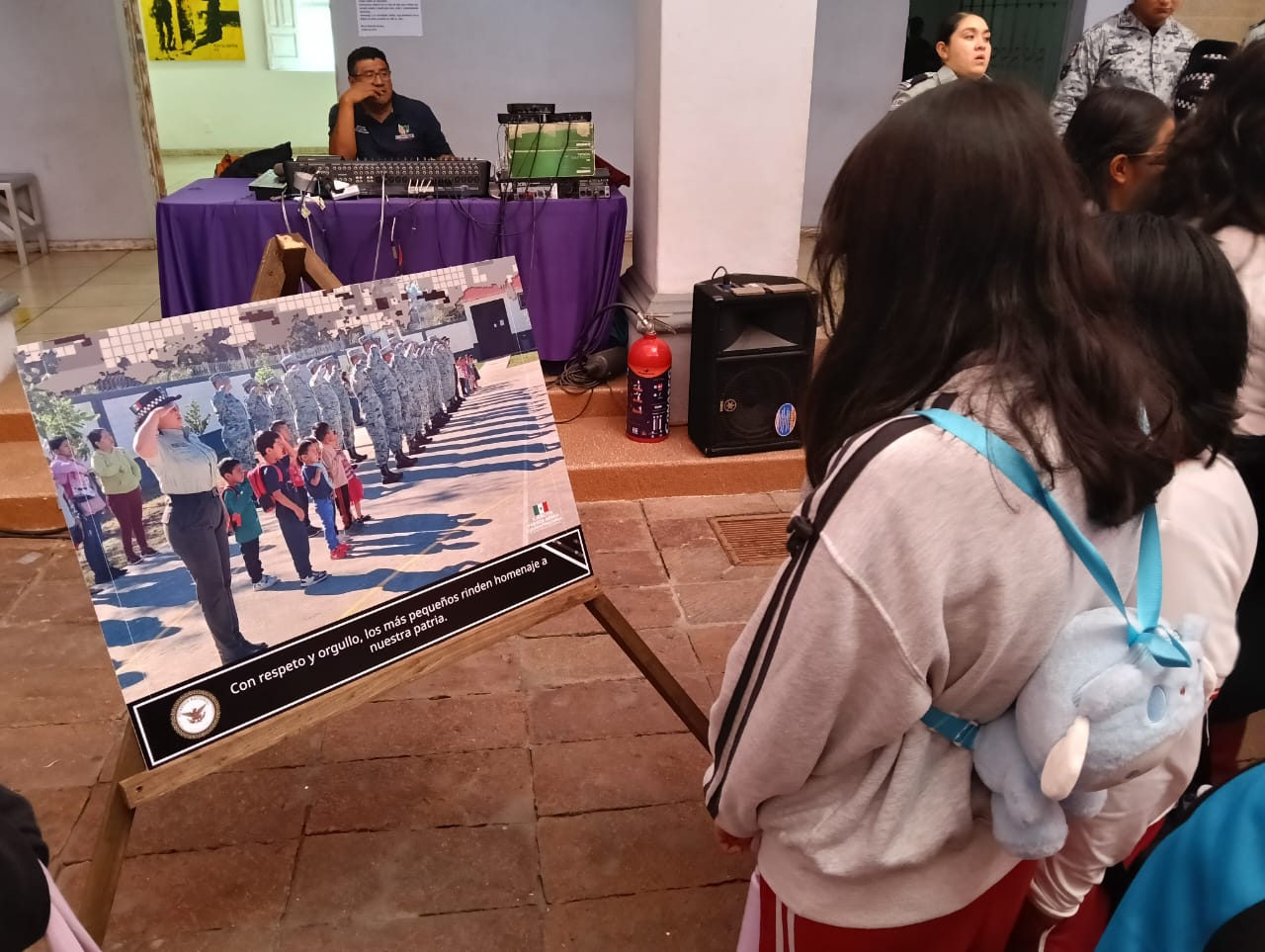 A la explanada del Museo de la Ciudad de Cuernavaca acudieron decenas de alumnas y alumnos de quinto y sexto grado de la Escuela Primaria “Enrique Pestalozzi” para apreciar las fotografías que integran esta exposición. Durante el recorrido, personal de la Guardia Nacional explicó el contexto de cada imagen, en las que se muestran acciones como el combate a incendios forestales, participación en actos cívicos escolares, rescates durante inundaciones y la promoción de la equidad de género, entre otras.