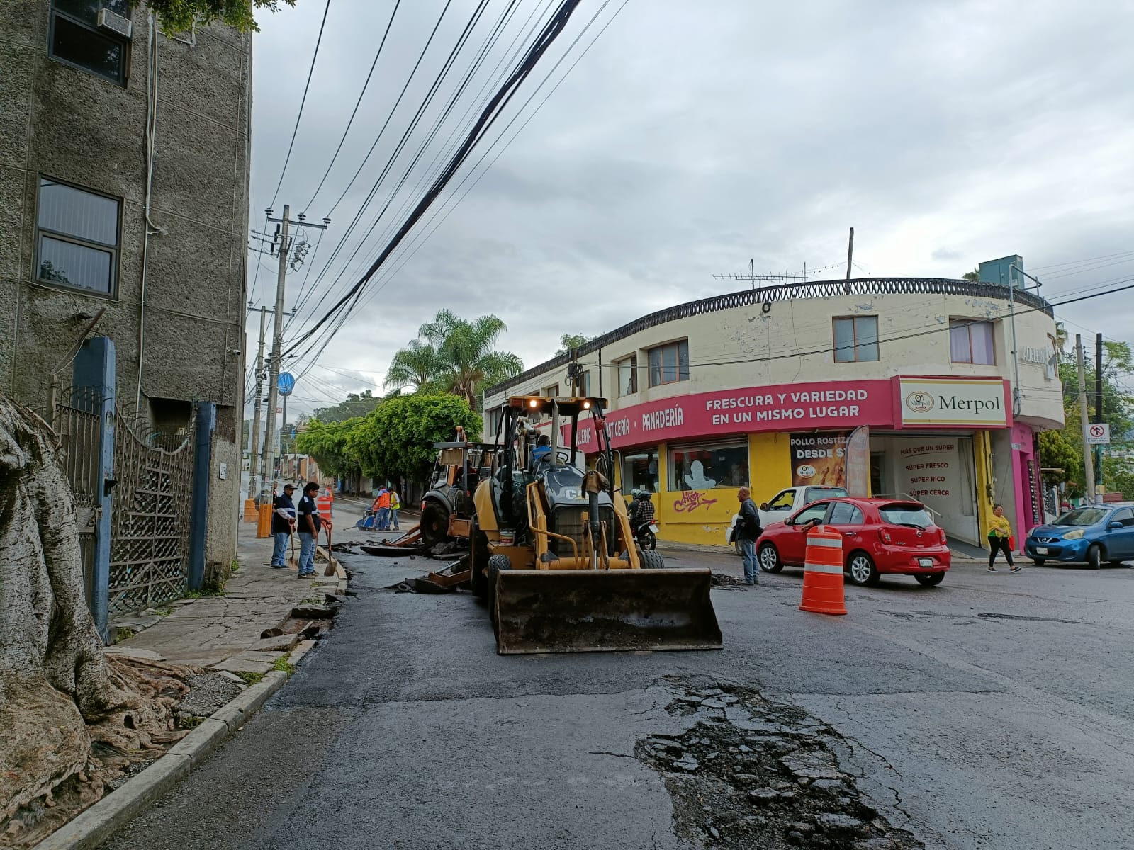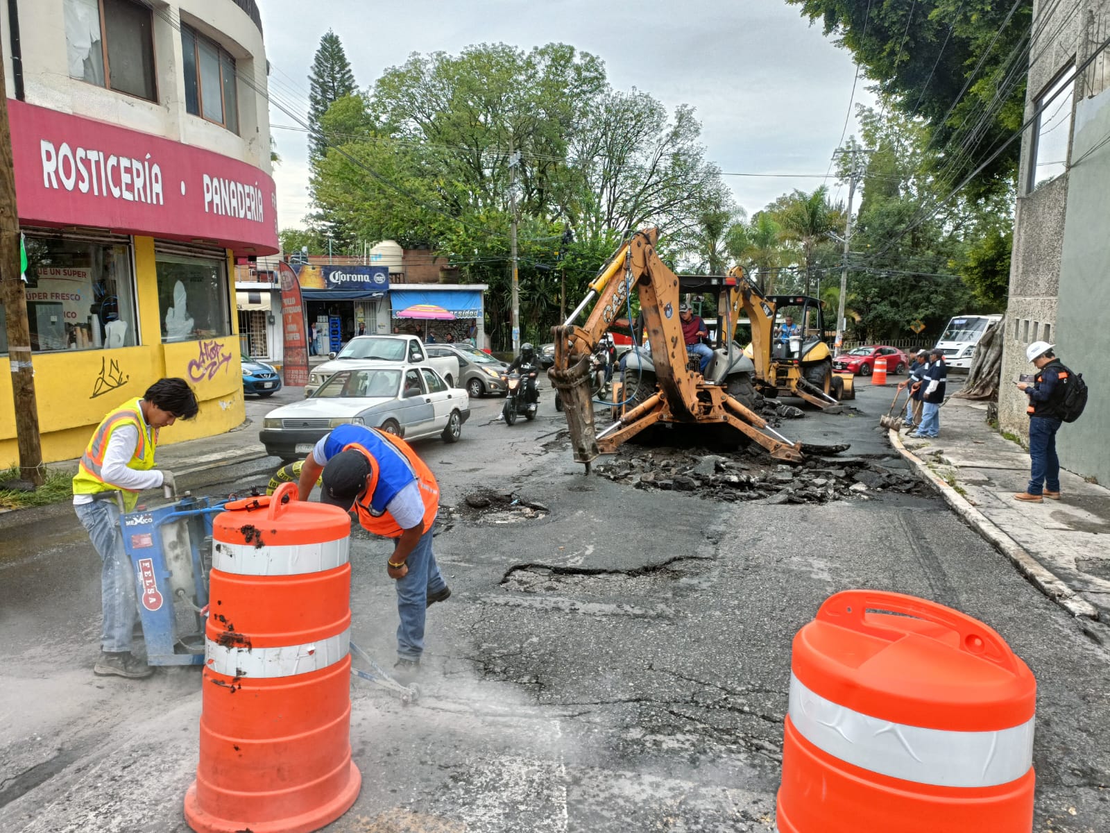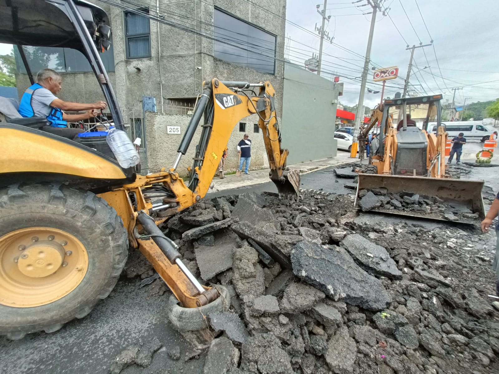 Por instrucciones del presidente municipal José Luis Urióstegui Salgado, se ingresó maquinaria pesada para demoler el concreto dañado y poder revisar el estado del pozo de visita, así como reconstruir el brocal y la tapa. Además, será necesario sustituir el material saturado de agua, compactar el suelo y estabilizarlo con cemento para posteriormente aplicar concreto hidráulico.