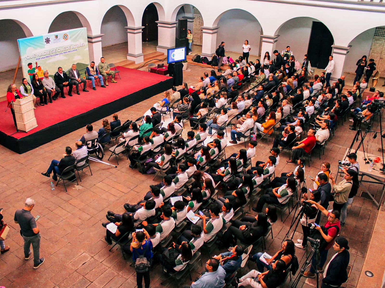 Desde el Museo de la Ciudad de Cuernavaca (MuCiC), y ante estudiantes, representantes de la sociedad civil y autoridades de los tres órdenes de gobierno, el alcalde subrayó la importancia de que todas las personas, sin distinción, cuenten con herramientas intelectuales y conocimientos adecuados para enfrentar fenómenos naturales o provocados por el ser humano.