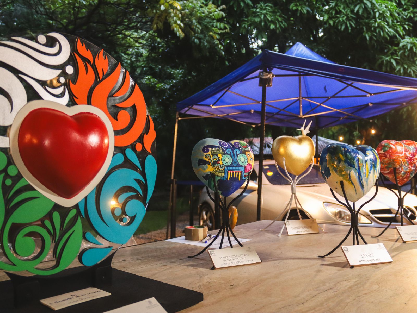 La reconocida Casa de Subastas Morton fue la encargada de conducir la puja de 186 piezas únicas, intervenidas por artistas plásticos, escultores y pintores locales, nacionales e internacionales. Muchos de ellos trabajaron sobre esculturas en forma de corazón diseñadas por la propia presidenta del DIF, símbolo universal del amor, la empatía y la esperanza.
