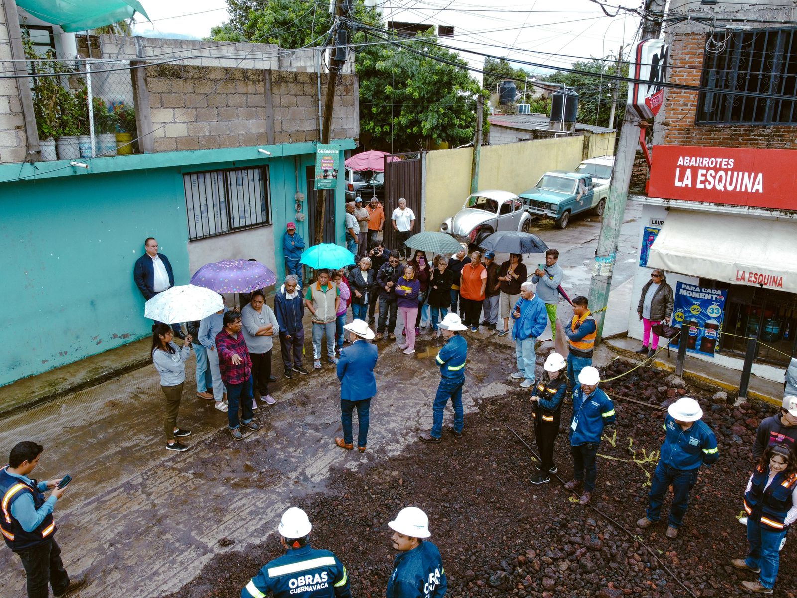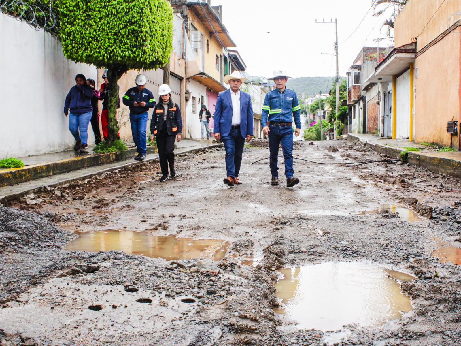 • A pesar de las condiciones climáticas, el alcalde de Cuernavaca recorrió diversas zonas de la capital para constatar con vecinas y vecinos el avance de obras estratégicas que abonarán a seguir mejorando la infraestructura hídrica y vial