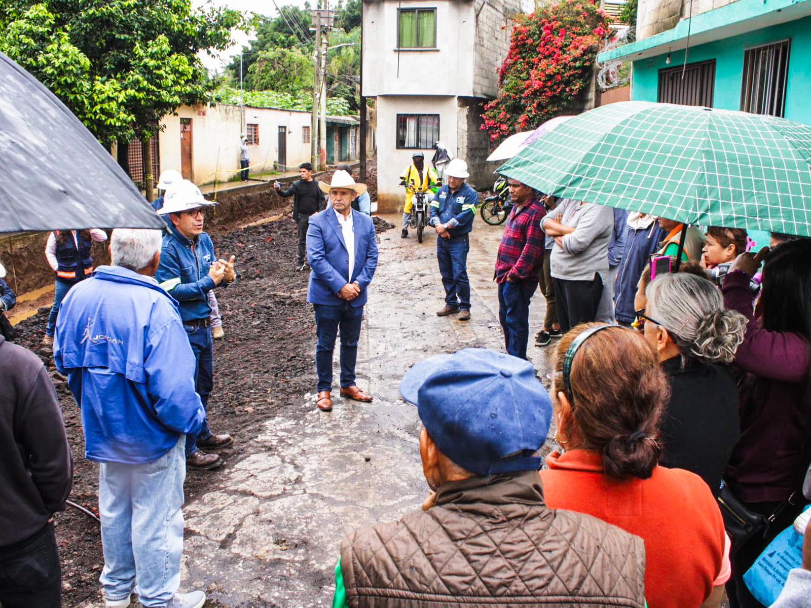 • A pesar de las condiciones climáticas, el alcalde de Cuernavaca recorrió diversas zonas de la capital para constatar con vecinas y vecinos el avance de obras estratégicas que abonarán a seguir mejorando la infraestructura hídrica y vial