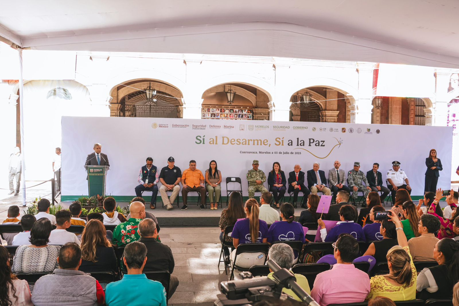 Como una acción conjunta entre los tres órdenes de gobierno, este jueves el presidente municipal de Cuernavaca, José Luis Urióstegui Salgado, encabezó el arranque del programa “Sí al desarme, sí a la paz”, mediante el cual, durante los próximos tres meses, la ciudadanía en la zona metropolitana podrá canjear de manera anónima armas de fuego, cartuchos o explosivos por dinero en efectivo, con el objetivo de reducir los delitos de alto impacto relacionados con el uso de armas.