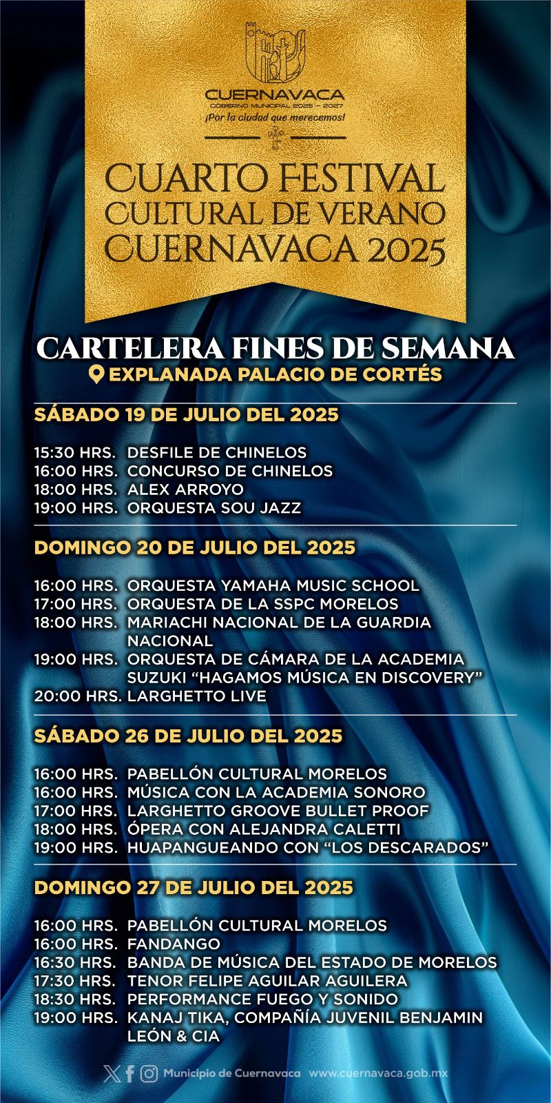 ¡Este verano, vive Cuernavaca como nunca antes! Consulta la cartelera completa en las redes oficiales del Municipio de Cuernavaca y prepárate para disfrutar de una experiencia inolvidable en una ciudad que lo tiene todo: historia, sabor, cultura y hospitalidad.
