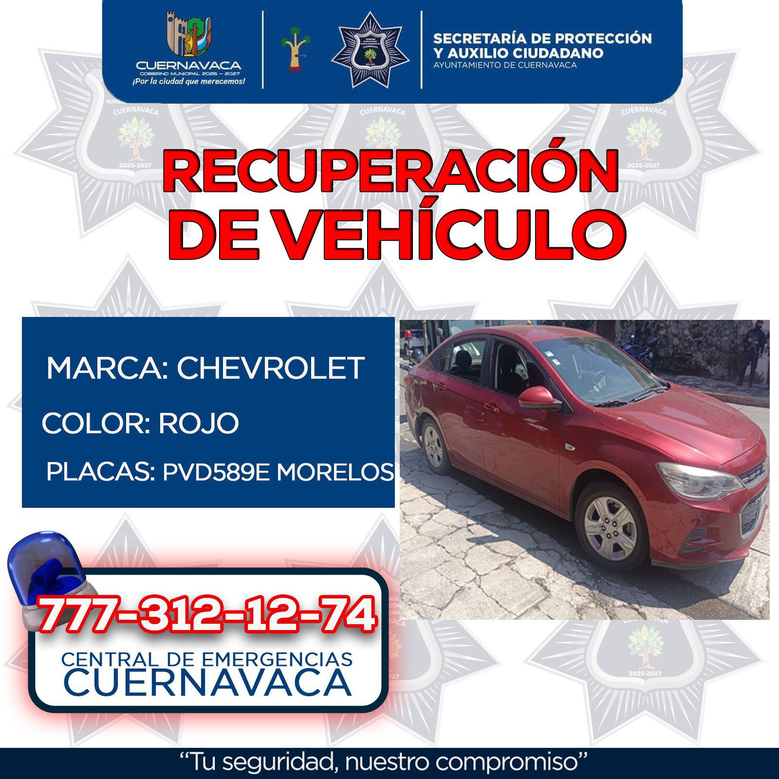 La SEPRAC reitera su compromiso de trabajar de manera cercana con los tres órdenes de gobierno para garantizar la paz y seguridad de las familias cuernavacenses, fortaleciendo acciones preventivas y de respuesta inmediata ante cualquier incidente.