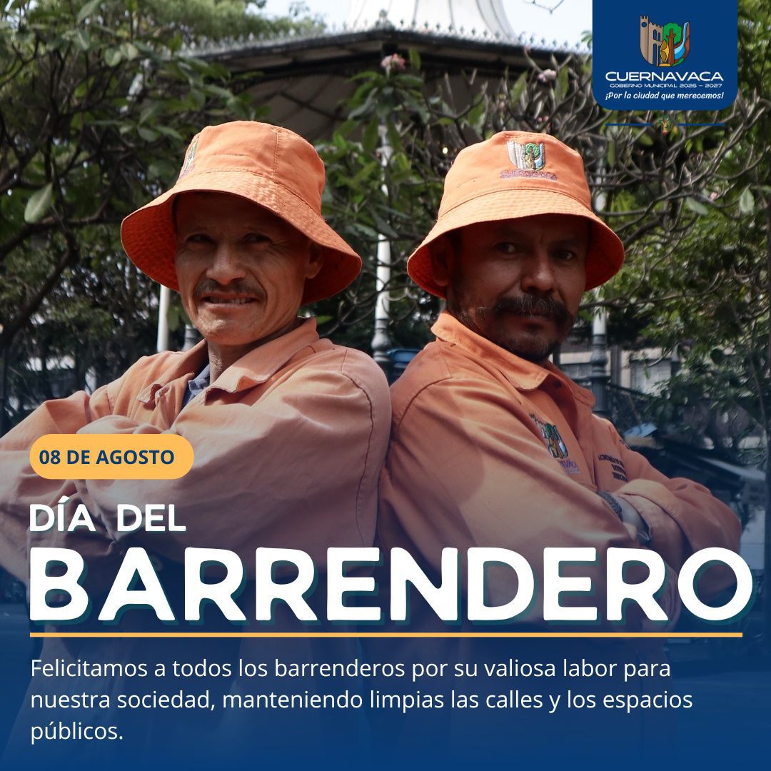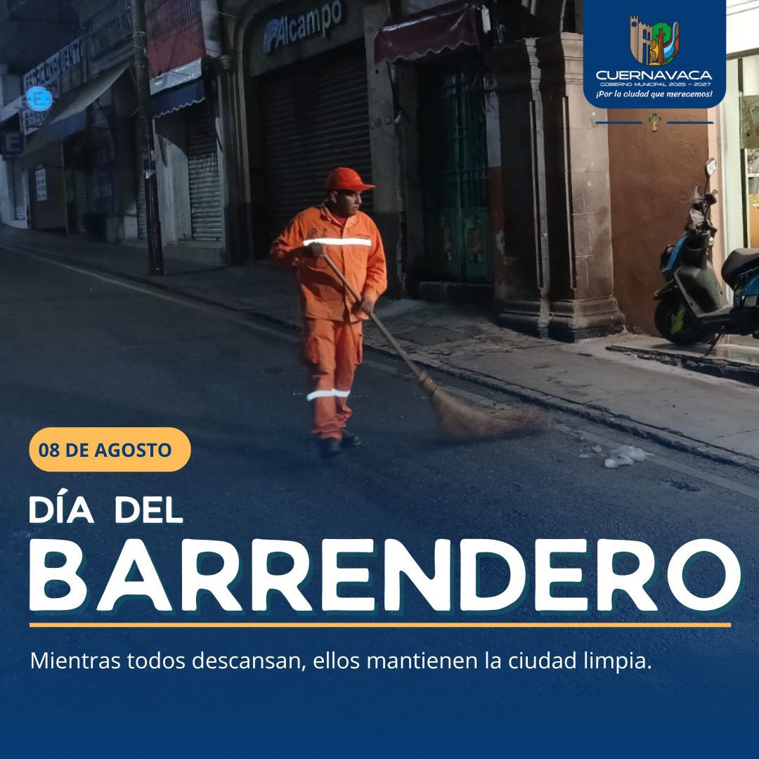 En el marco del Día del Barrendero, el Ayuntamiento de Cuernavaca extiende una felicitación y un profundo reconocimiento a quienes, con su esfuerzo diario, mantienen limpias nuestras calles, avenidas y espacios públicos.