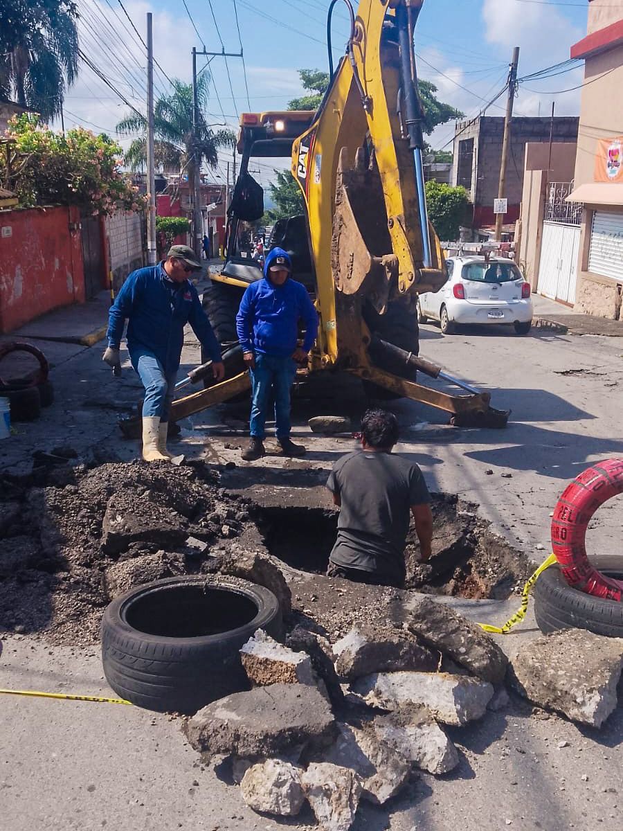 Asimismo, en la esquina de avenida Teopanzolco y calle Nueva Inglaterra, se realiza la rehabilitación provisional de un pozo de visita, con la colocación posterior de una rejilla pluvial por parte de la Secretaría de Desarrollo Urbano y Obras Públicas (SDUyOP). Aunque esta obra ha generado acumulación de tierra en la zona, ya se efectúa la limpieza de escombros con apoyo de la empresa responsable, facilitando así la limpieza de patios por parte de los vecinos.
