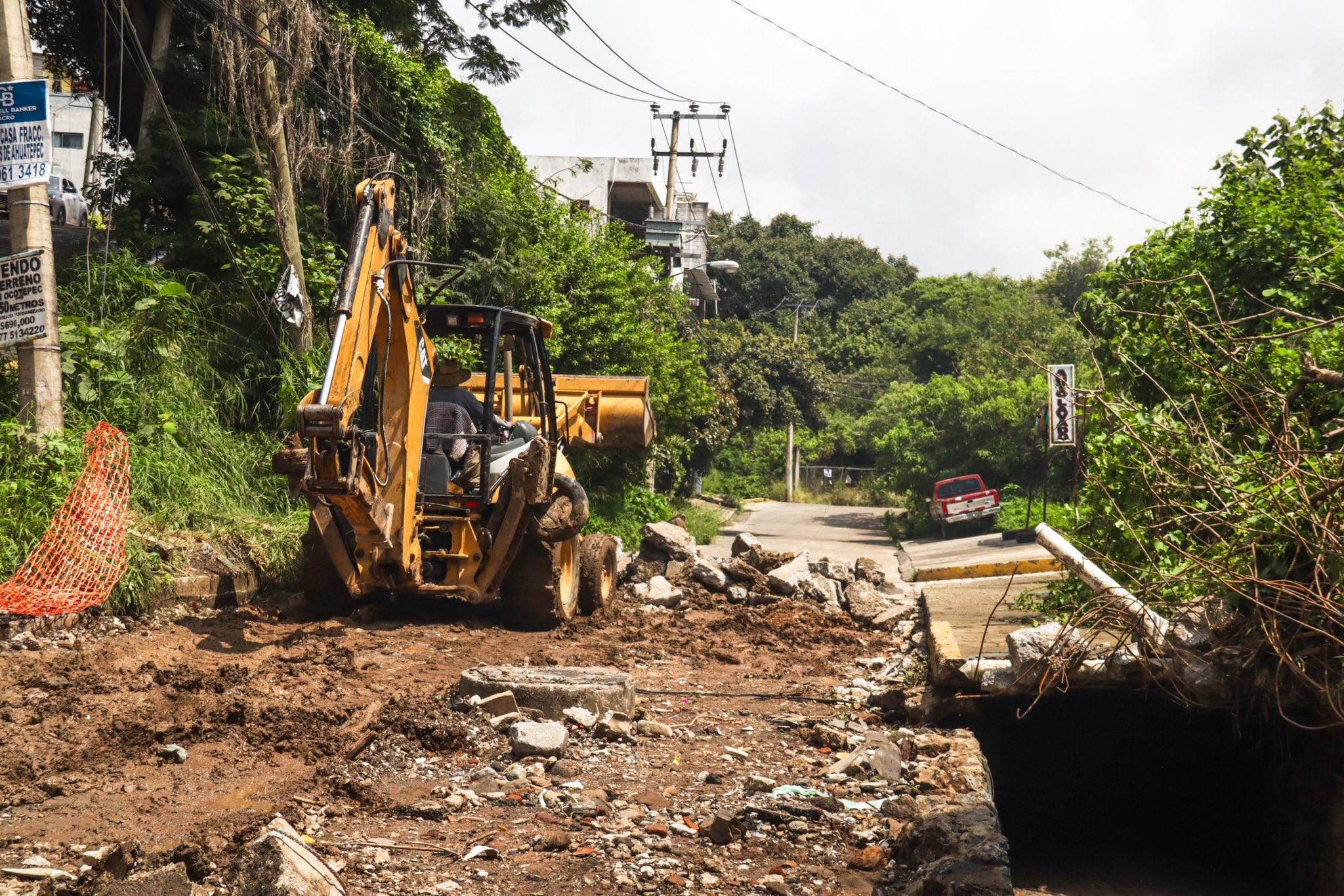 El Ayuntamiento de Cuernavaca, a través de la Secretaría de Desarrollo Urbano y Obras Públicas (SDUyOP), avanza en la obra emergente de reparación en la avenida Cuernavaca, contraesquina de la calle Tres Cruces en el poblado de Ahuatepec, luego de que las lluvias de la madrugada del viernes provocaran daños al concreto hidráulico por el taponamiento de un canal.