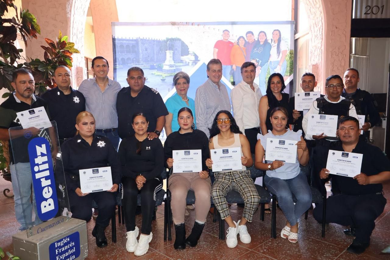 Como parte de las estrategias del Ayuntamiento de Cuernavaca para consolidar a la ciudad como un destino turístico seguro, accesible y de calidad, 11 elementos de la Policía Turística, pertenecientes a la Secretaría de Protección y Auxilio Ciudadano (SEPRAC), recibieron un certificado por haber concluido exitosamente el curso “Inglés Básico de Primer Contacto”.