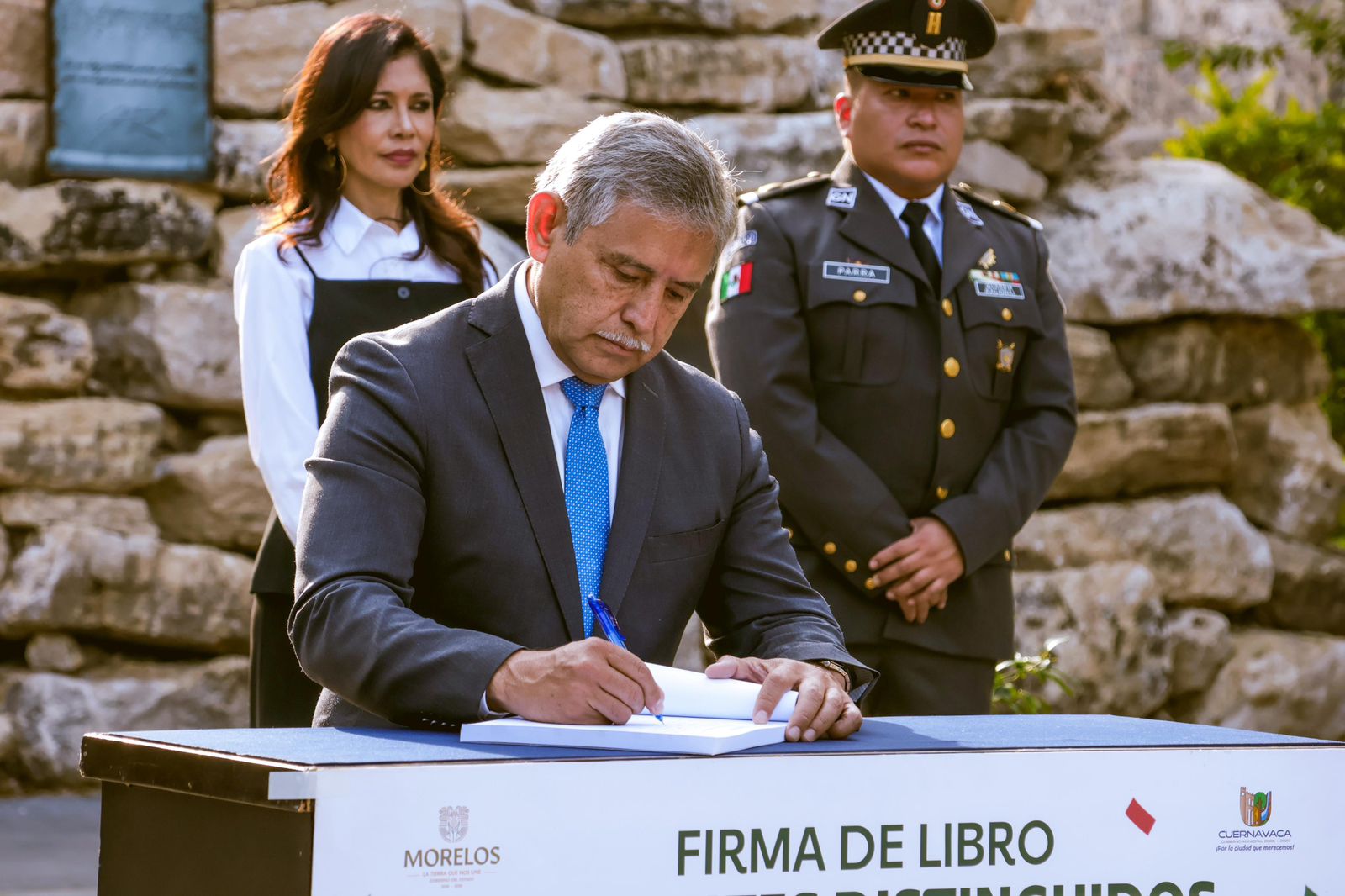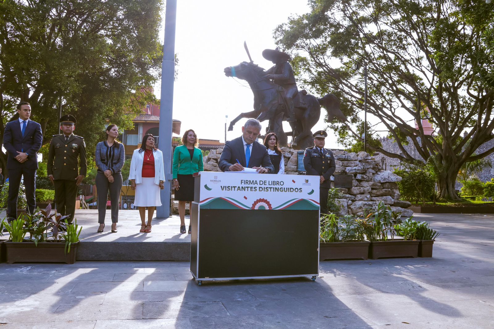 En este marco, Urióstegui Salgado plasmó un mensaje en el Libro de Visitantes Distinguidos de las Ceremonias Cívicas del Mes Patrio de la Administración 2024- 2030, donde resaltó que estos actos cívicos contribuyen a fortalecer los valores de unidad y a reconstruir el tejido social en Cuernavaca y Morelos.