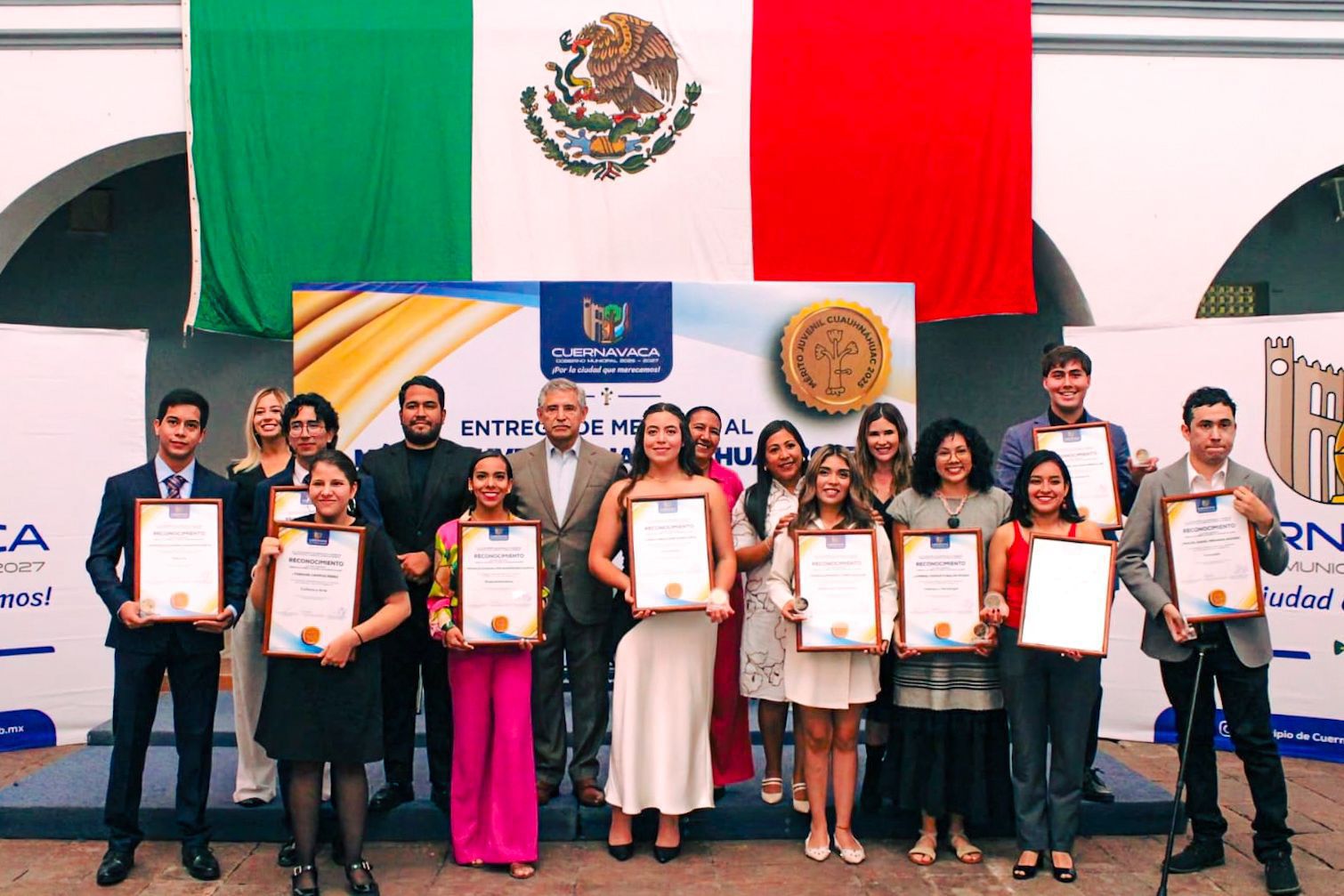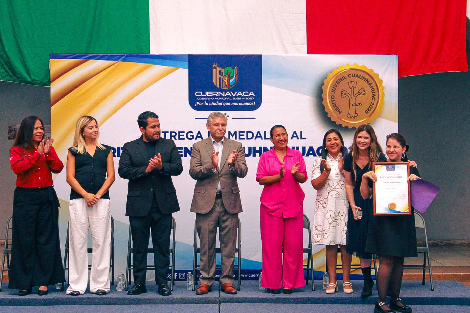 El Ayuntamiento de Cuernavaca, a través del Instituto de la Juventud adscrito a la Secretaría de Desarrollo Humano y Participación Social (SDHyPS), reconoció este martes a 10 jóvenes que han demostrado liderazgo, talento y compromiso con la sociedad en distintas disciplinas, mediante la entrega de la Medalla al Mérito Juvenil “Cuauhnáhuac” 2025, encabezada por el presidente municipal José Luis Urióstegui Salgado en el Museo de la Ciudad de Cuernavaca (MuCiC).