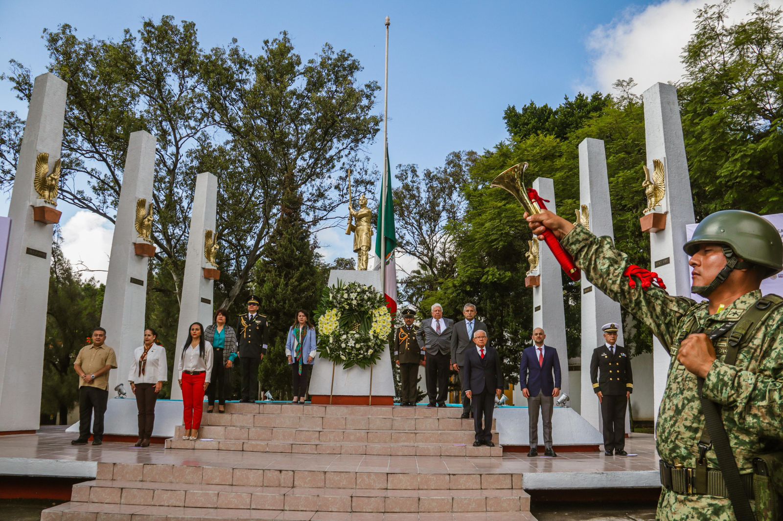 El evento, que tuvo como marco el monumento a los Niños Héroes, fue encabezado por la gobernadora Margarita González Saravia y el General de Brigada Diplomado de Estado Mayor José Luis Bucio Quiroz, comandante de la 24/a Zona Militar, quien dirigió el pase de lista de los cadetes caídos, a lo cual las y los presentes respondieron con la frase: “Murió por la patria”.