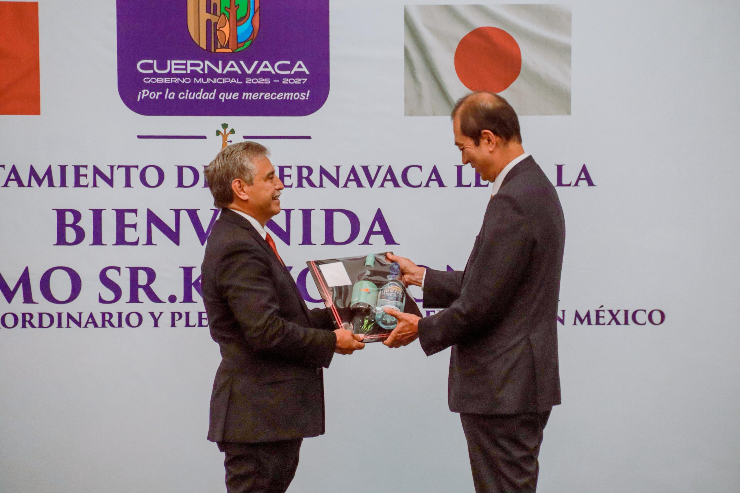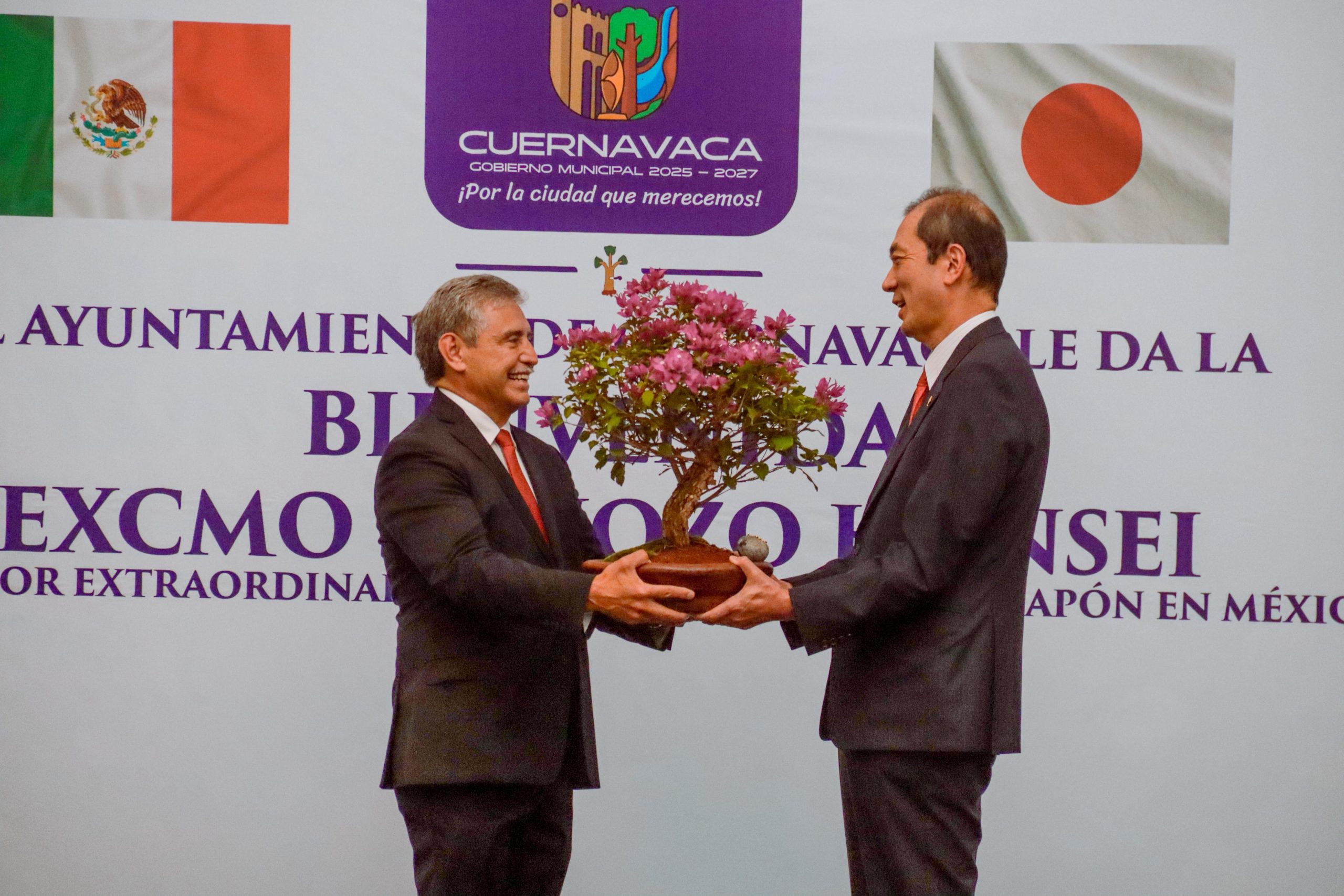 En el marco de la relación fraterna que mantiene la capital morelense con las ciudades japonesas de Ōtaki y Minoh, este viernes el presidente municipal de Cuernavaca, José Luis Urióstegui Salgado, recibió al Excelentísimo Sr. Embajador de Japón en México, Kozo Honsei, en el Museo de la Ciudad de Cuernavaca (MuCiC), sede de la exposición de arte floral japonés Ikebana, organizada por el Ayuntamiento capitalino en coordinación con Ikebana Morelos- México.