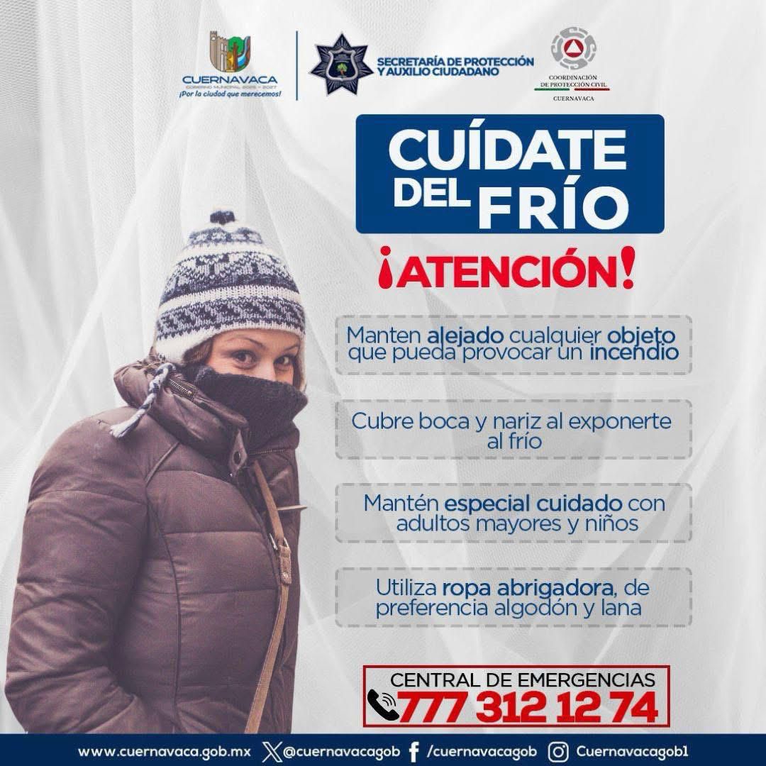 En caso de detectar alguna situación de riesgo, como incendios por el mal uso de calefactores, personas en situación de calle expuestas a bajas temperaturas o emergencias médicas, se solicita reportar de inmediato al número de atención 777-312-12-74, disponible las 24 horas del día.