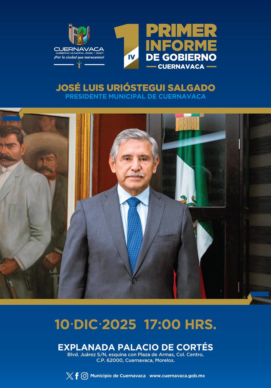 El próximo miércoles 10 de diciembre, el presidente municipal de Cuernavaca, José Luis Urióstegui Salgado rendirá su Primer Informe de Gobierno correspondiente a su segunda administración municipal, en un ejercicio de transparencia y rendición de cuentas ante la ciudadanía de la capital morelense.