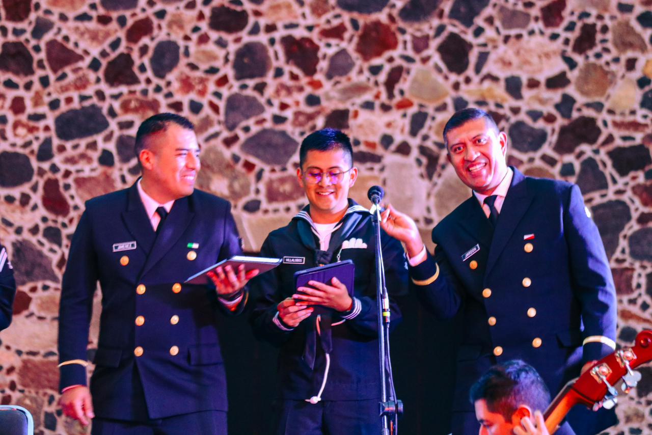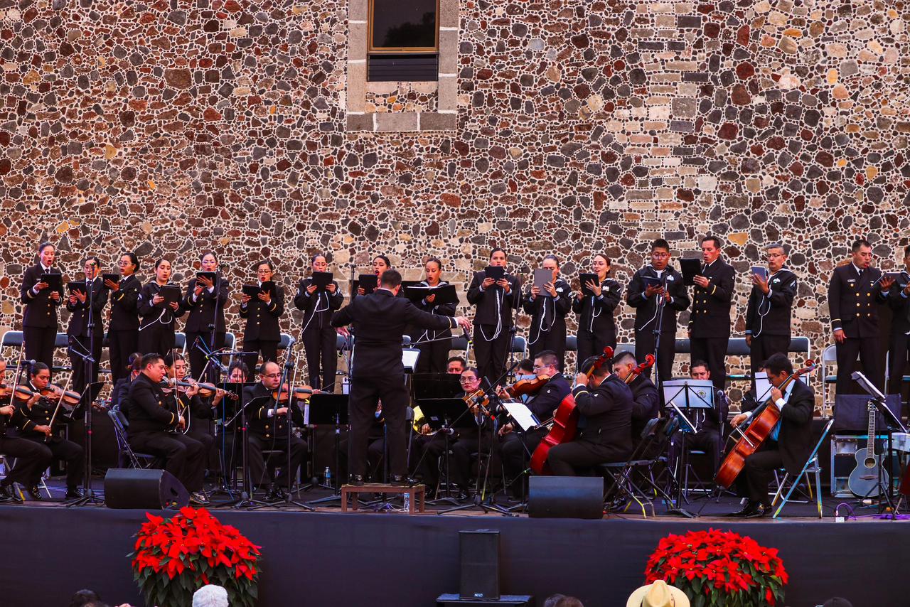 Bajo la dirección del Teniente de Corbeta Servicio Músico Naval, Rodrigo Morfín Quintanar, director musical y del Teniente de Navío Servicio Músico Naval, Jorge Alberto Gutiérrez Torres, director musical, la agrupación ofreció un repertorio que combinó villancicos tradicionales, clásicos navideños y arreglos contemporáneos con ritmos latinos, creando una atmósfera emotiva que conectó a niñas, niños, jóvenes y personas adultas mayores en una celebración compartida.