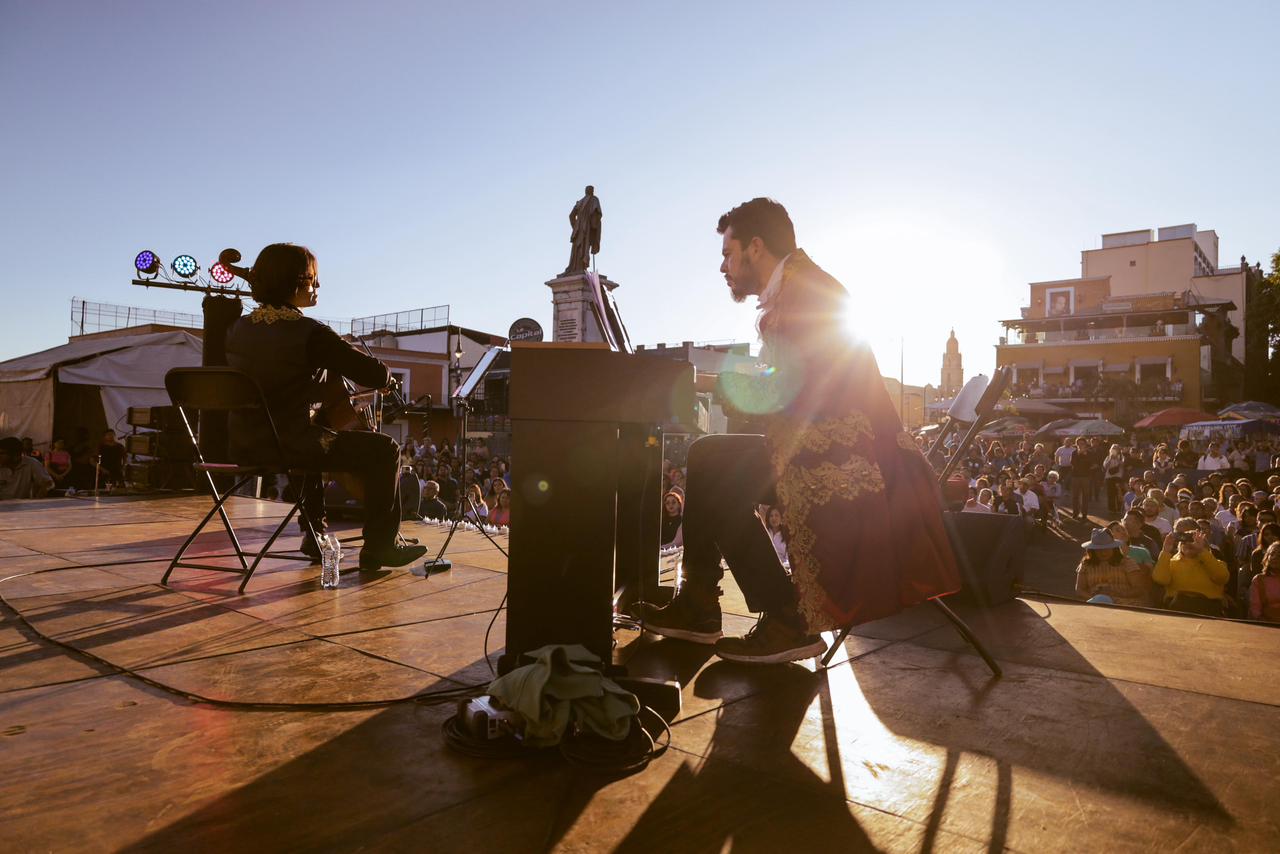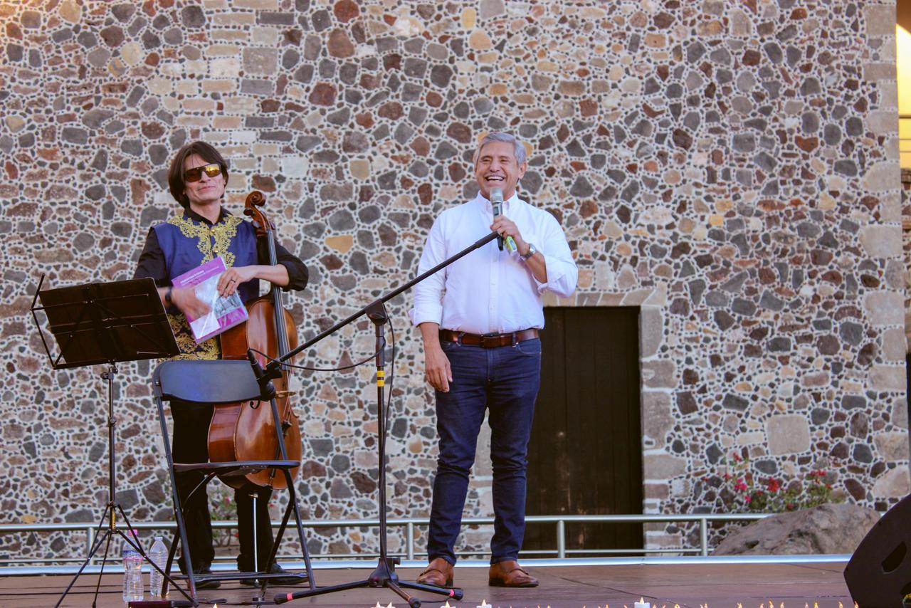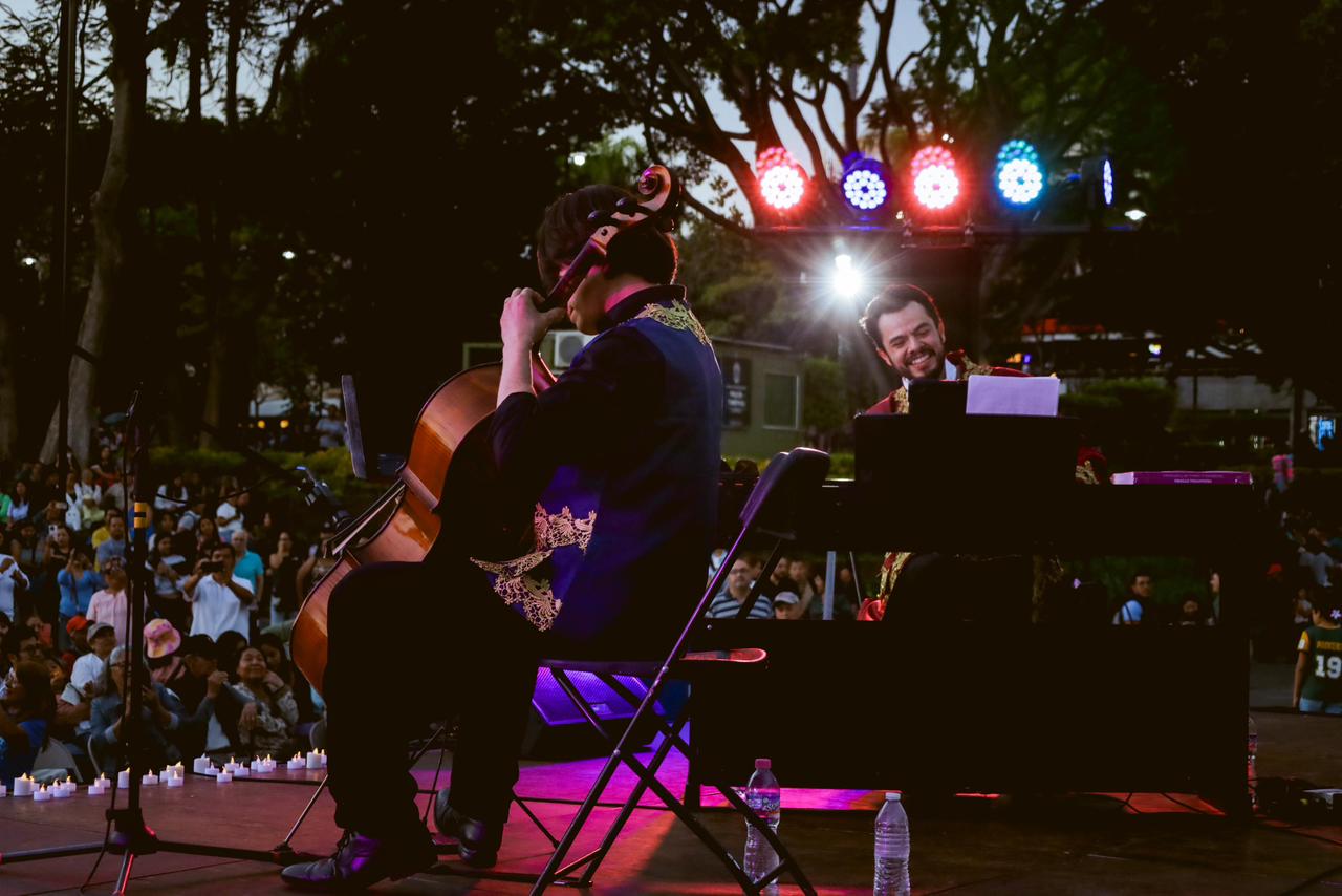 La velada musical estuvo a cargo del maestro Hebre Schiavon en el piano, concertista con amplia trayectoria artística y formador de proyectos incluyentes, y del maestro Orlando Espinoza en el violonchelo, intérprete con presentaciones en escenarios nacionales e internacionales. Ambos cuentan con formación en el Conservatorio Nacional de Música.