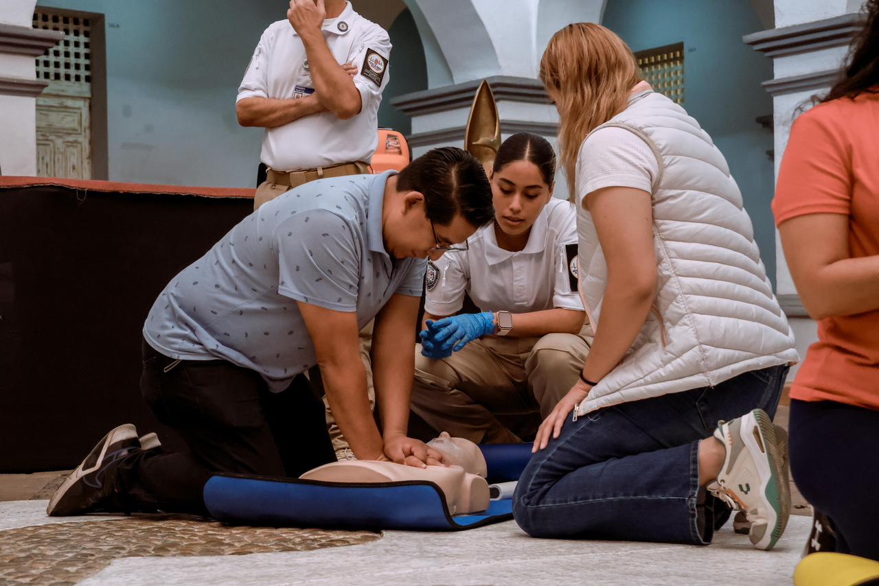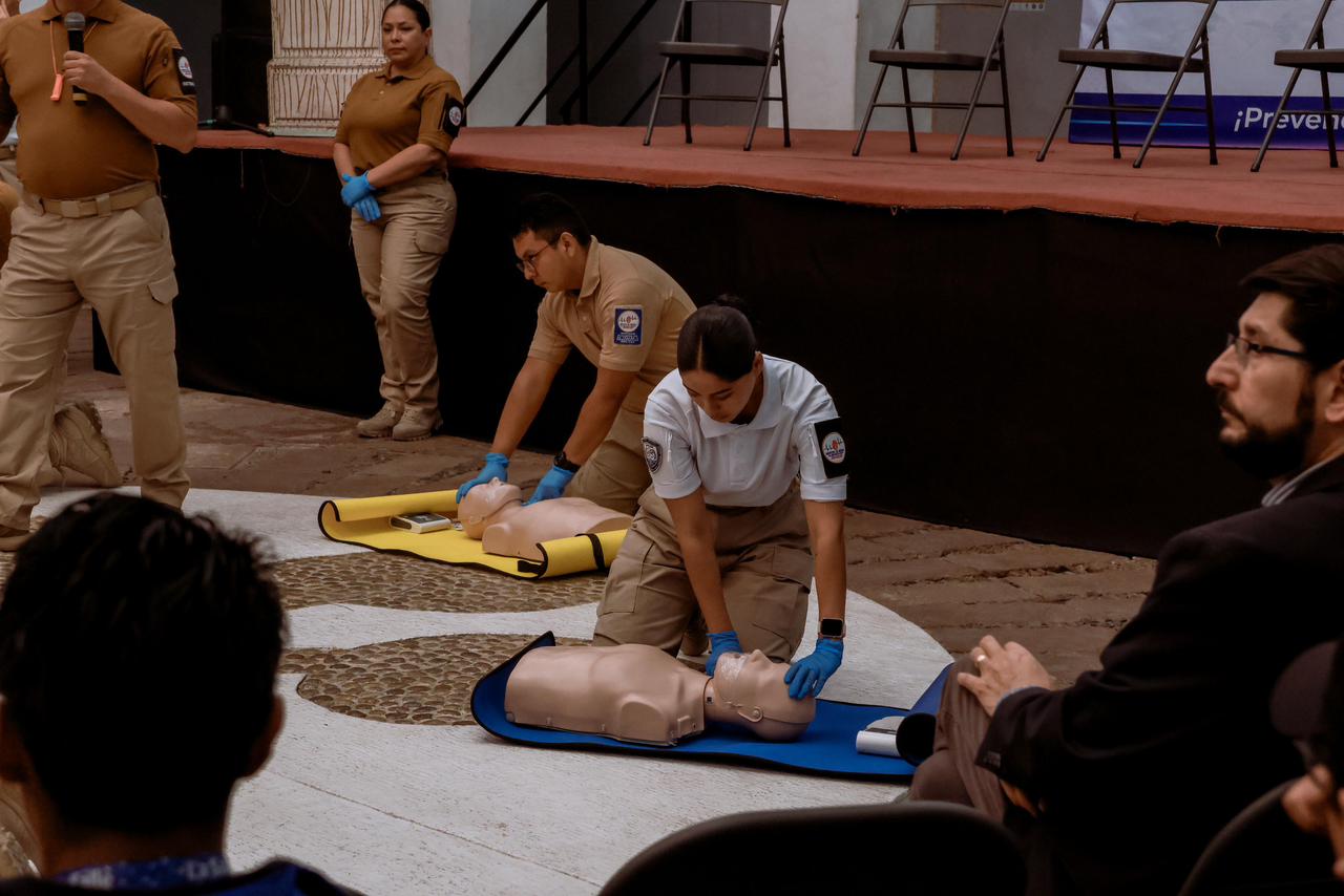 Como parte de la programación, se llevó a cabo una capacitación teórico-práctica, en la que las y los asistentes aprendieron maniobras de reanimación cardiopulmonar (RCP) y el uso adecuado del Desfibrilador Externo Automático (DEA), herramientas importantes para restablecer el ritmo cardíaco en situaciones de paro súbito.