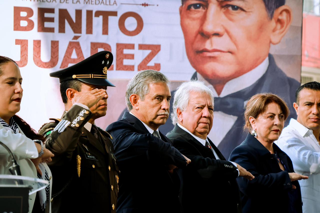 Durante la ceremonia, se llevó a cabo la entrega de la Medalla Benito Juárez García al Mérito Ciudadano, así como rosetas y diplomas a las y los ganadores del Concurso Estatal de Pintura “Juárez vive en Morelos”, reconociendo el talento y compromiso de estudiantes, docentes y personal administrativo de diversas instituciones educativas.