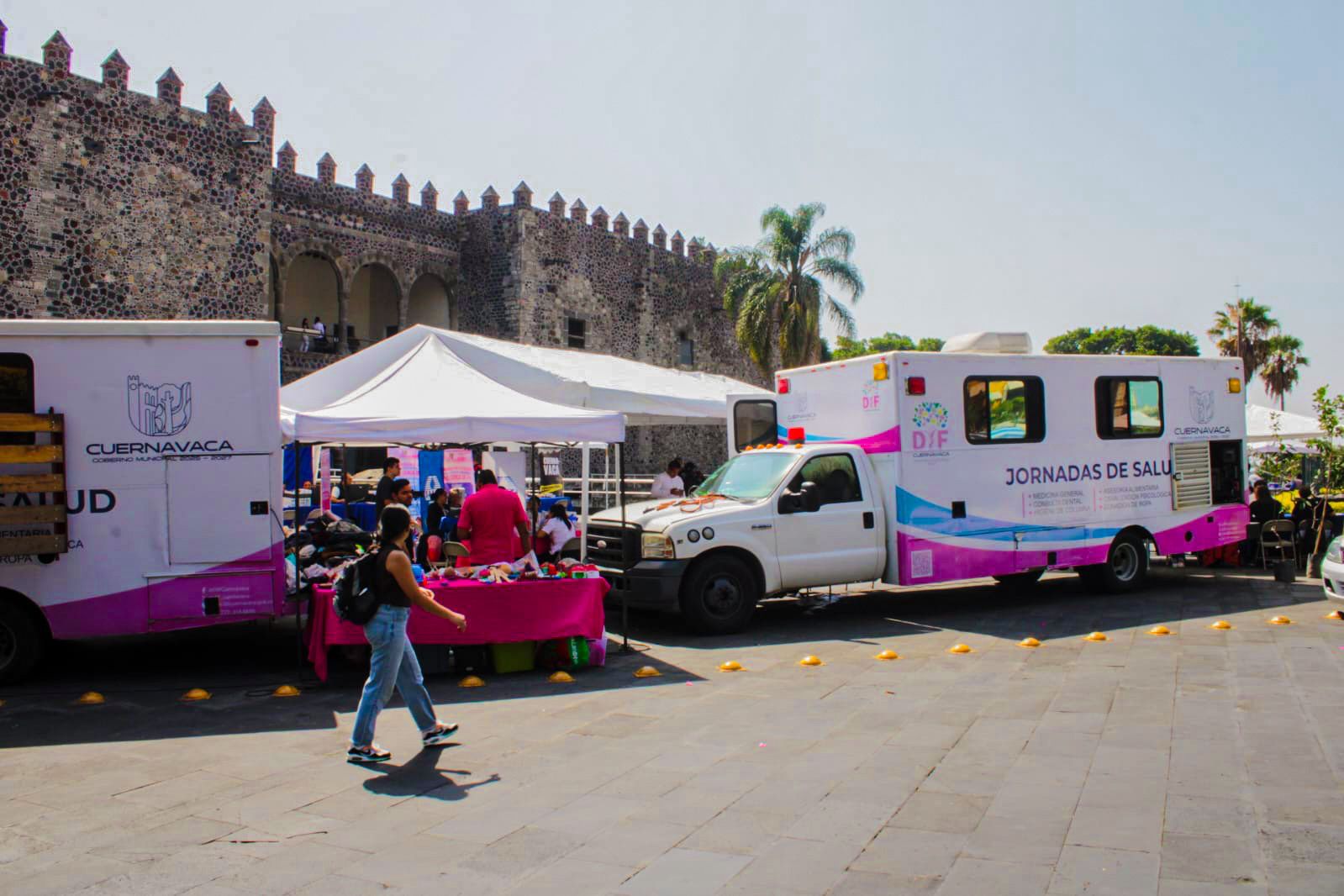 * La explanada del Palacio de Cortés fue sede de “Cuernavaca en tu Colonia”, donde se brindaron servicios esenciales gratuitos a la población.