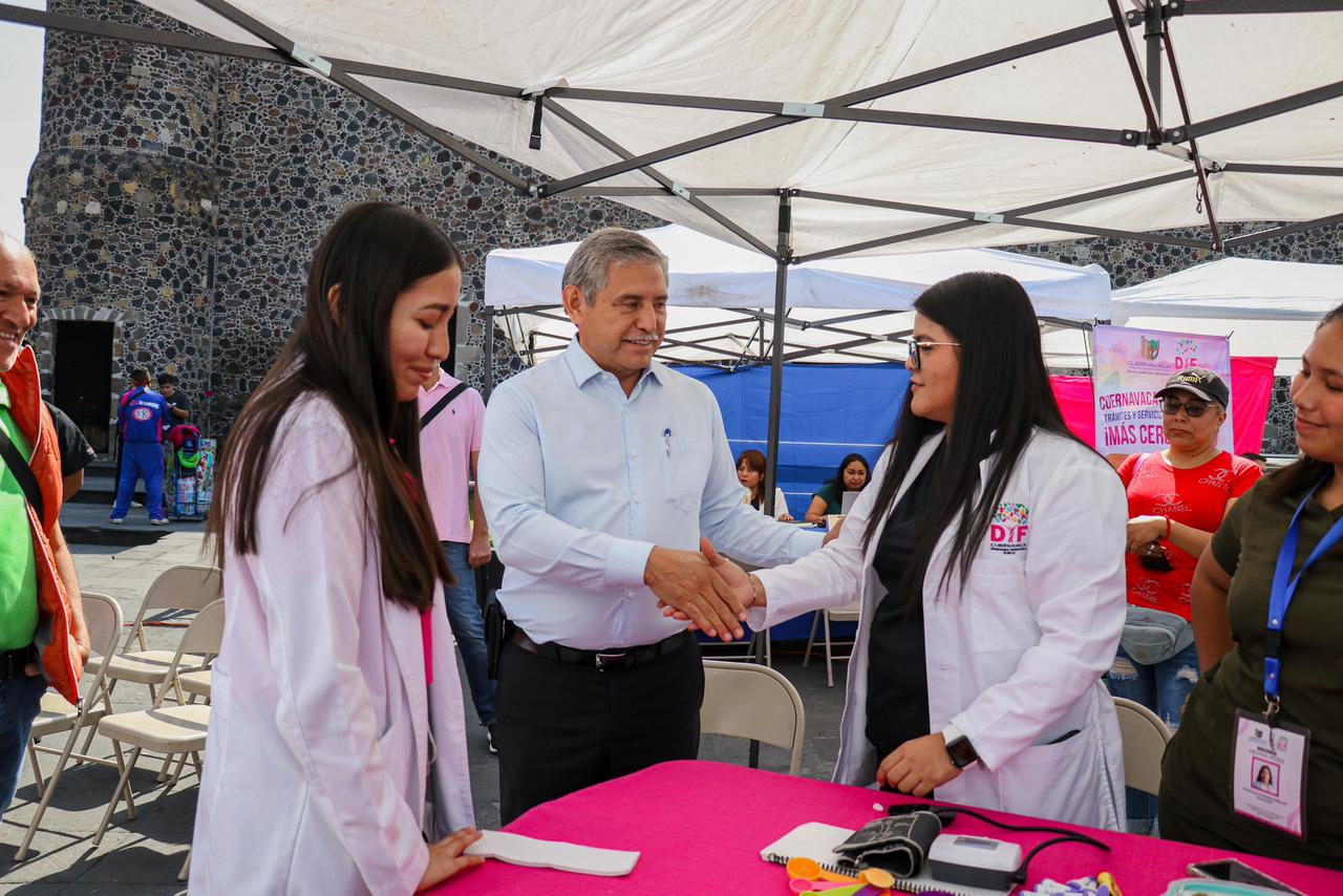 Como parte del compromiso permanente de consolidar un gobierno cercano, eficiente y de atención directa a la ciudadanía, el Ayuntamiento de Cuernavaca, a través del Sistema Municipal DIF, realizó este jueves una nueva jornada del programa “Cuernavaca en tu Colonia”, teniendo como sede la explanada del Palacio de Cortés, donde las y los ciudadanos accedieron de manera gratuita a servicios médicos, trámites administrativos y apoyos sociales.