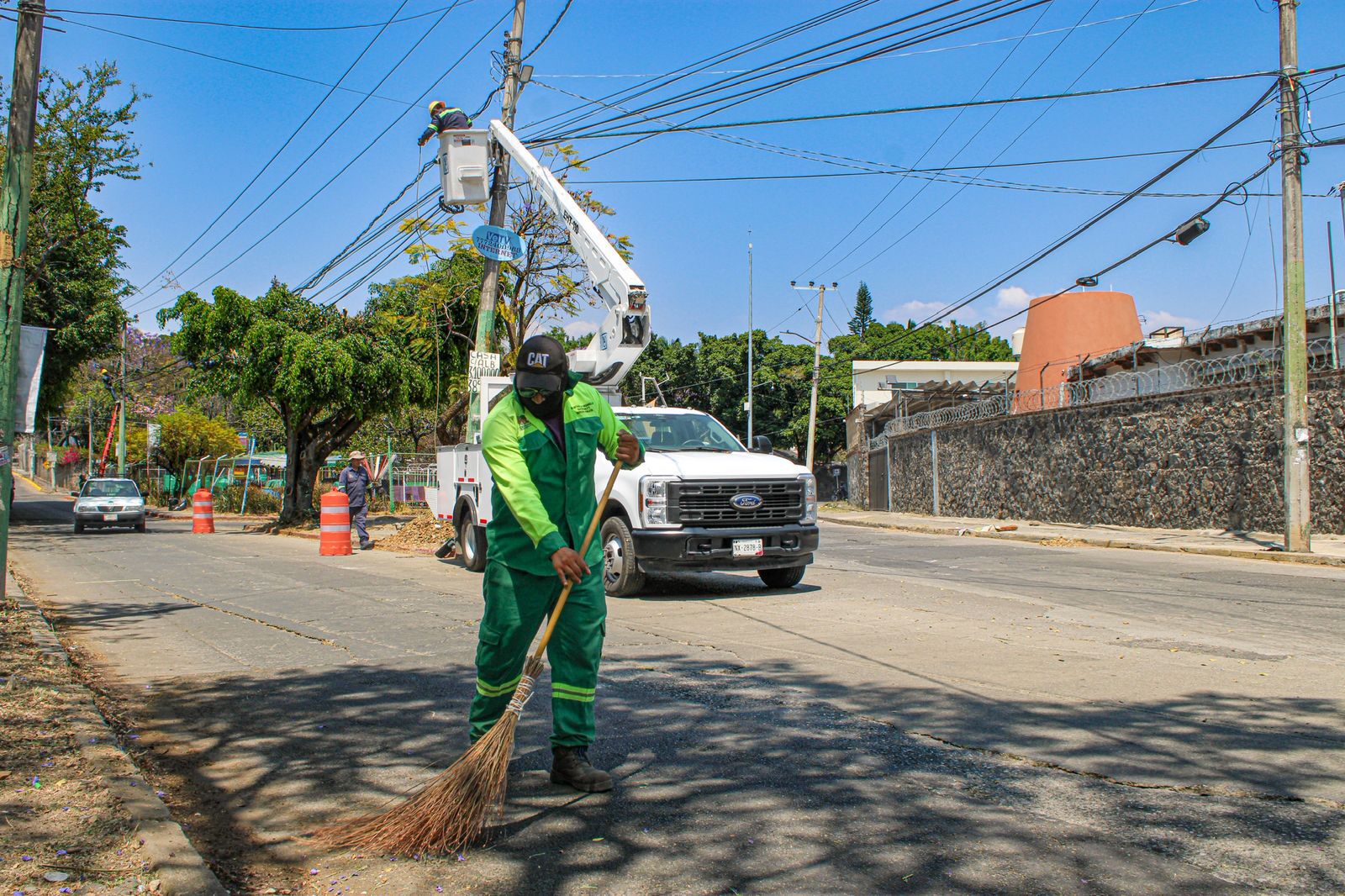 La Secretaría de Desarrollo Sustentable y Servicios Públicos (SDSySP) llevó a cabo un trabajo integral en la colonia Volcanes y zonas aledañas, conocida como “Los Belenes”, con el objetivo de mantener en óptimas condiciones los servicios públicos en una de las áreas con mayor tránsito vehicular y peatonal del municipio.