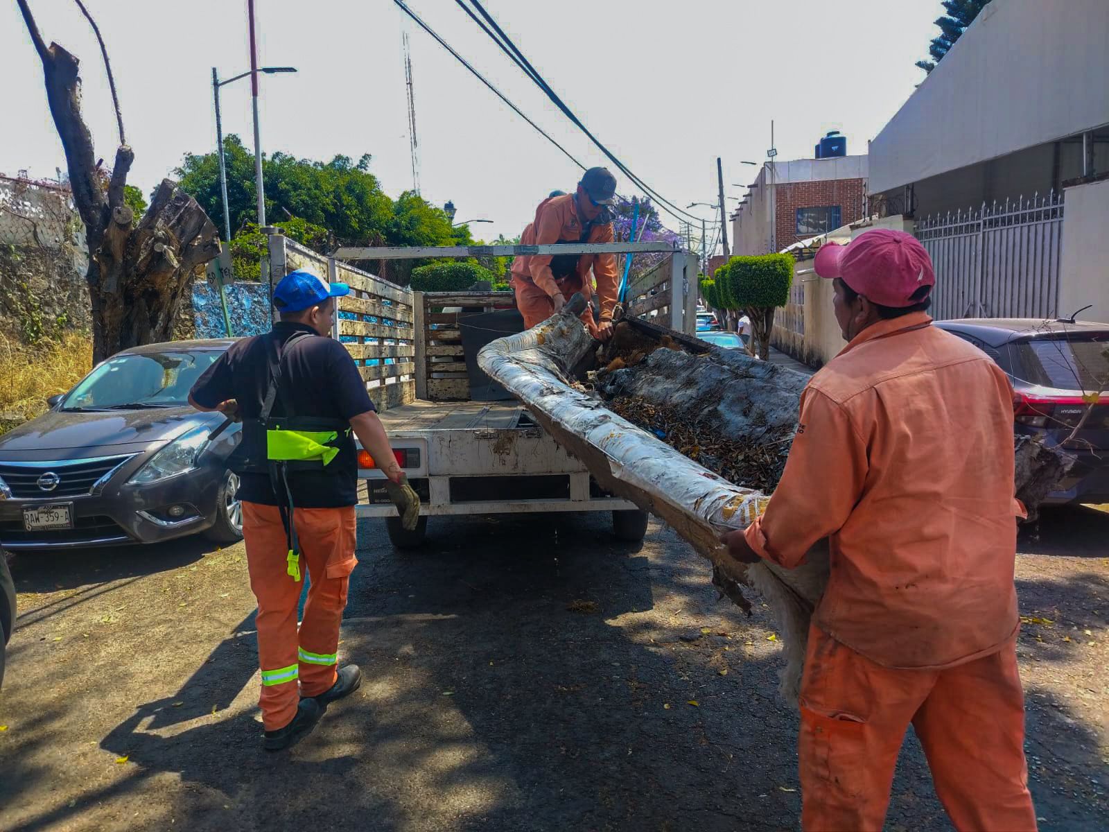 Asimismo, se llevaron a cabo labores de limpieza y mantenimiento urbano, incluyendo la recolección de más de 12 metros cúbicos de desecho vegetal, así como 950 metros cuadrados de chaponeo, jardinería y barrido, además de barrido manual en distintas calles.