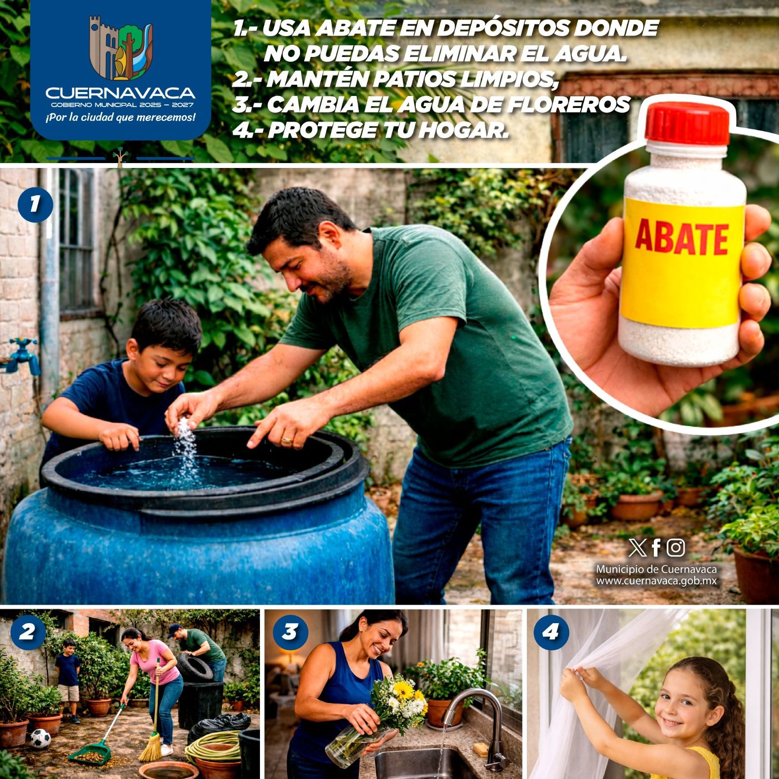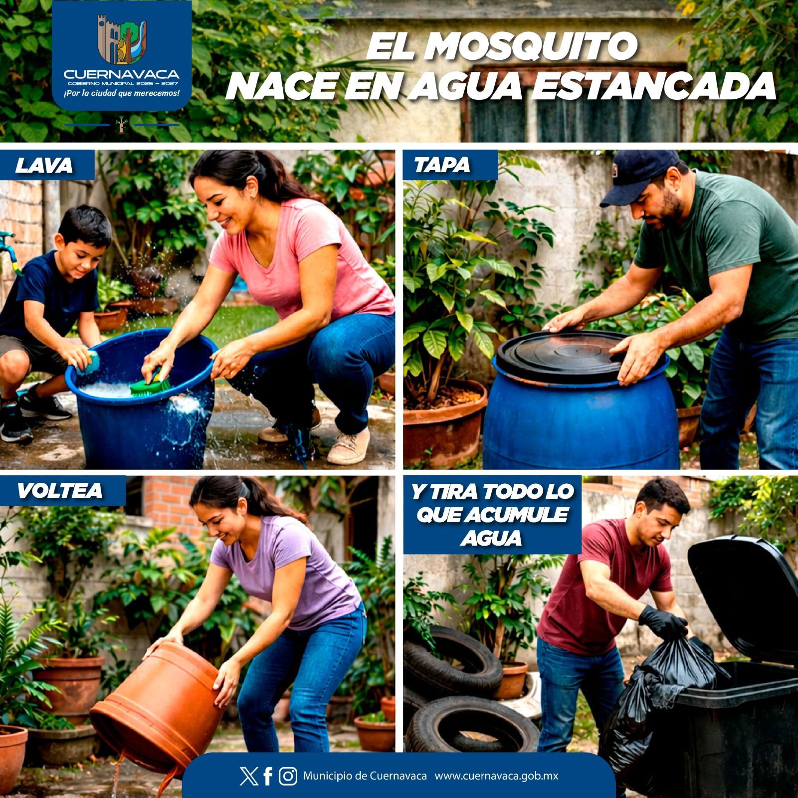 El Ayuntamiento de Cuernavaca refuerza el llamado a la ciudadanía para cerrar filas contra el dengue, zika y chikungunya, destacando que la participación activa de las familias es clave para evitar la proliferación del mosquito Aedes aegypti, principal transmisor de estos padecimientos.
