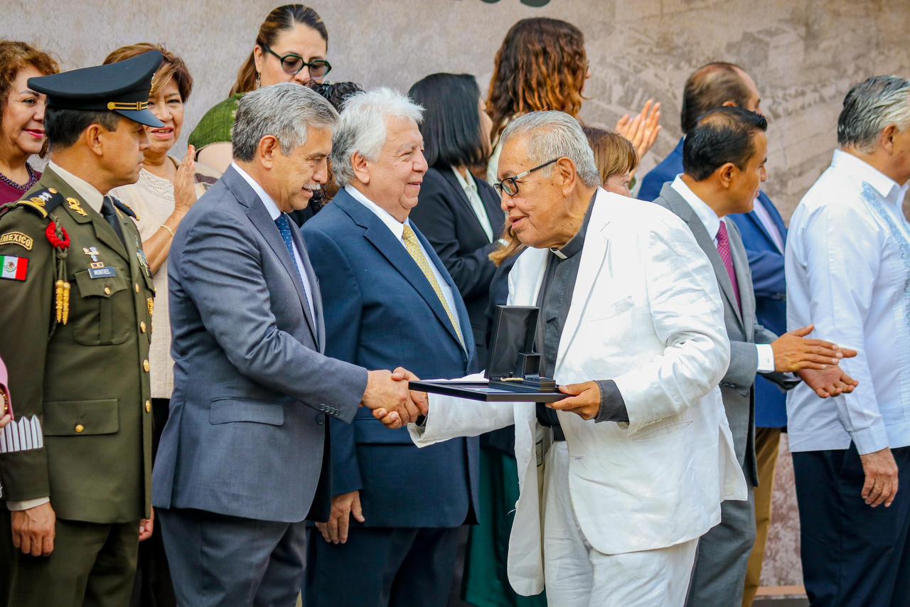 Durante la ceremonia cívica realizada en la explanada de la Plaza General Emiliano Zapata Salazar, el alcalde acompañó a la gobernadora Margarita González Saravia y a autoridades de los tres órdenes de gobierno, a la entrega de la venera “José María Morelos y Pavón, Morelenses de Excelencia”, con el propósito de reconocer a quienes contribuyen de manera significativa al progreso del estado.