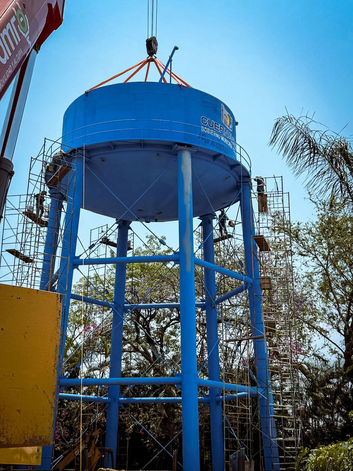 Ubicado en la colonia Rinconada Cuernavaca, el tanque cuenta con una estructura metálica de alta resistencia, diseñada para ofrecer estabilidad, durabilidad y eficiencia operativa a largo plazo. Su próxima puesta en operación se realizará una vez concluidas las interconexiones, fortaleciendo así el servicio en esta zona de la ciudad.