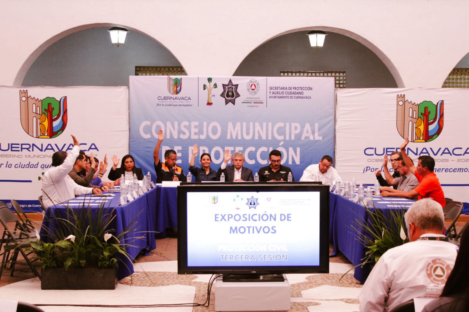 • En la tercera sesión ordinaria del Consejo Municipal de Protección Civil, el Ayuntamiento de Cuernavaca reafirmó su compromiso de fortalecer las acciones preventivas para reducir riesgos en la capital morelense